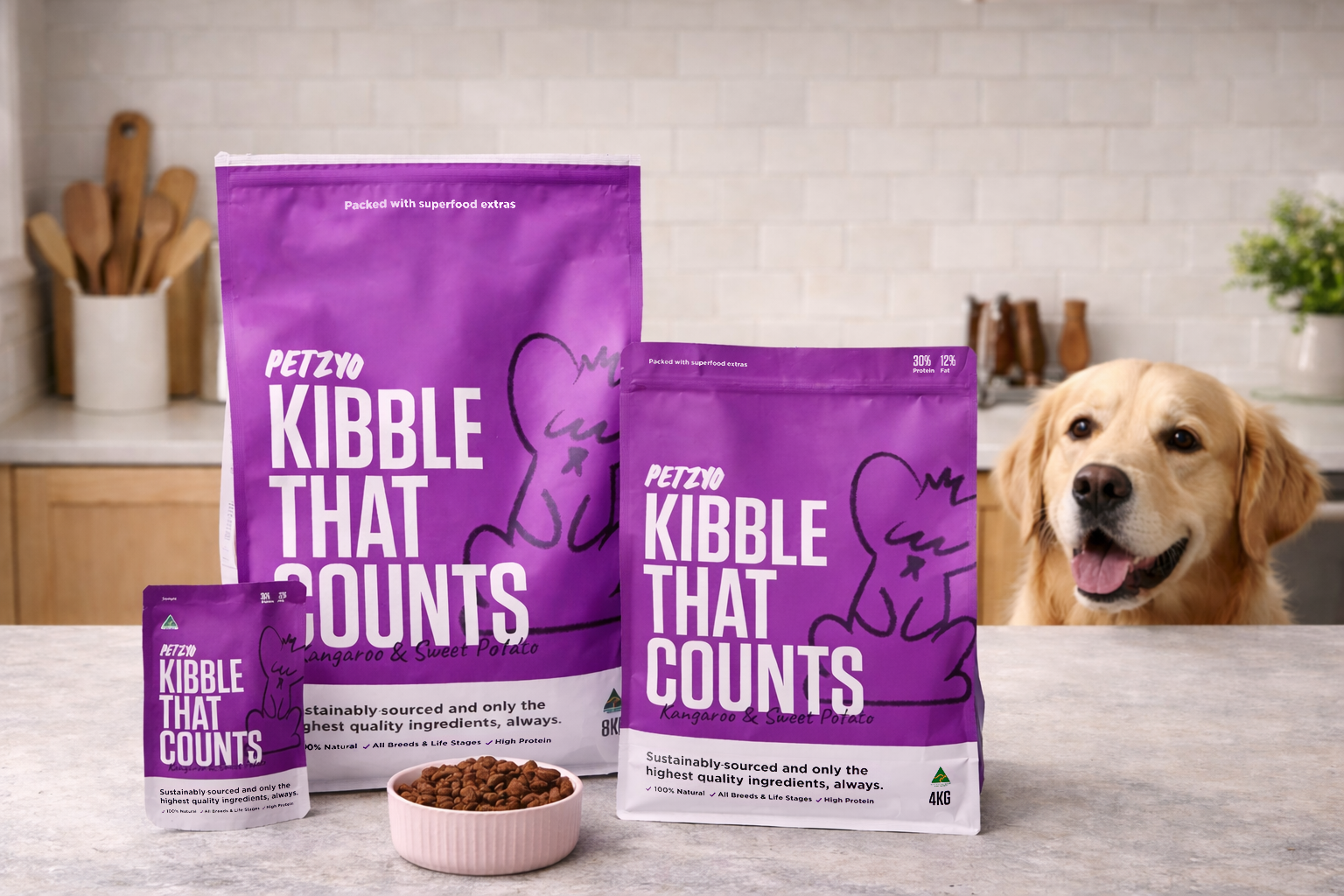 Petzyo offers a range of dog food options, including dry kibble and raw patties, developed by canine nutritionists and vet-approved to meet nutritional standards (AAFCO and PFIAA). They also offer a custom serving guide based on a dog's specific profile (age, weight, activity level).